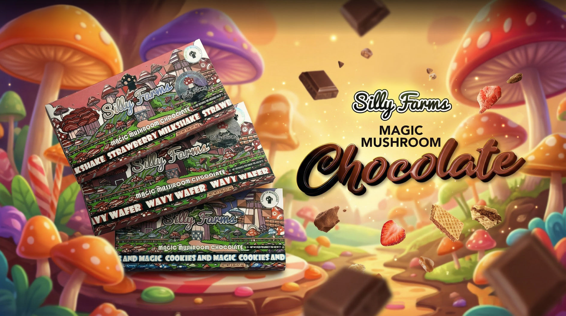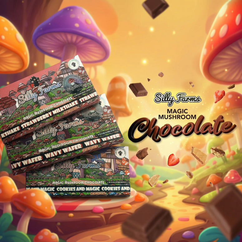 Indulge in the allure of our 7 gram Silly Farms chocolate, a decadent blend of rich cocoa and the mystical essence of the magic mushroom.Experience a symphony of flavors as you embrace the enchanting magic hidden within each velvety square. Mushrooms redefined, taste the difference.